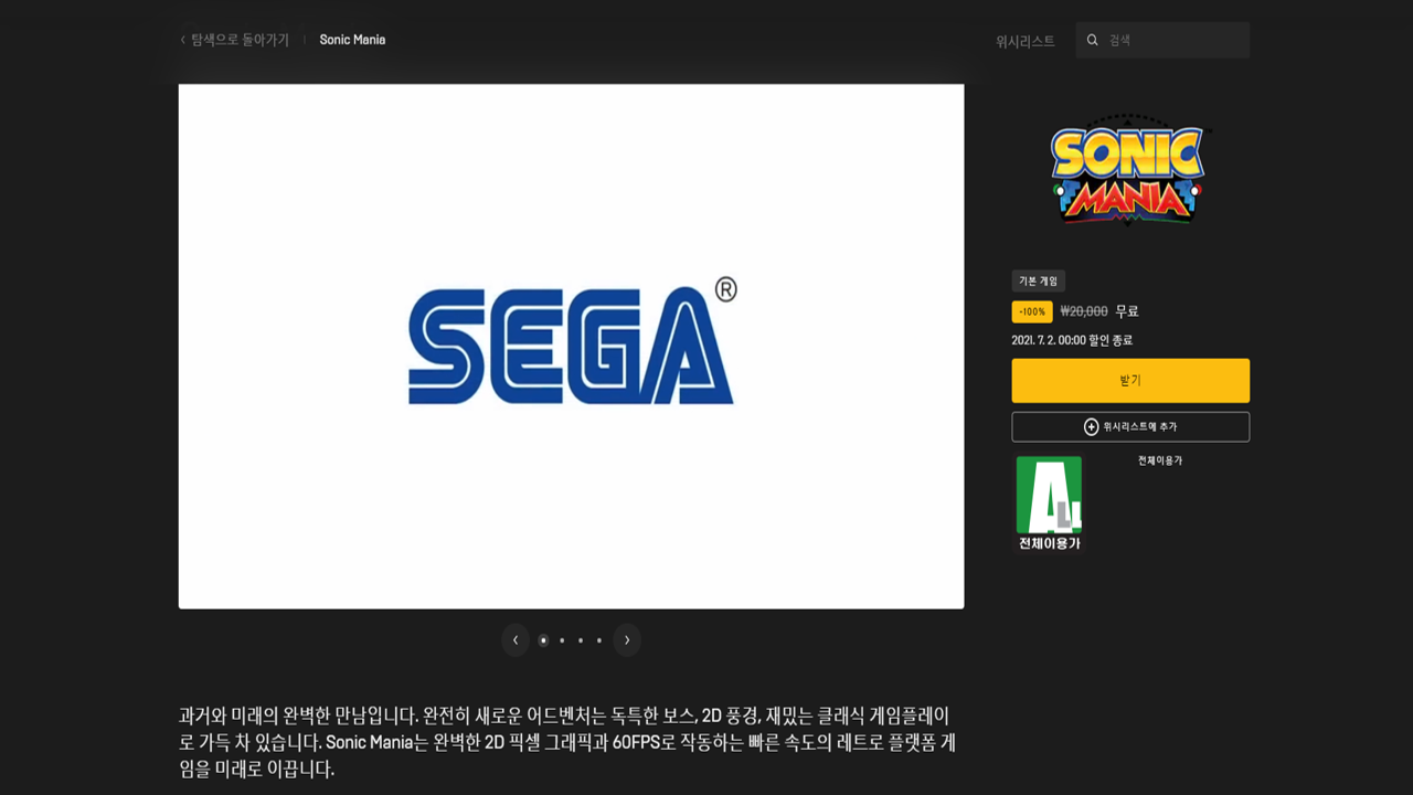 에픽게임즈 소닉 Sonic Mania 무료 다운로드하는 방법에 대해 알려드리겠습니다.