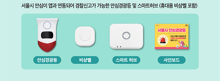 긴급한 상황 발생 시 비상벨 작동으로 경광등 및 사이렌, 경찰 출동 및 안심이앱 연동 알림까지 가능한 안전서비스입니다.